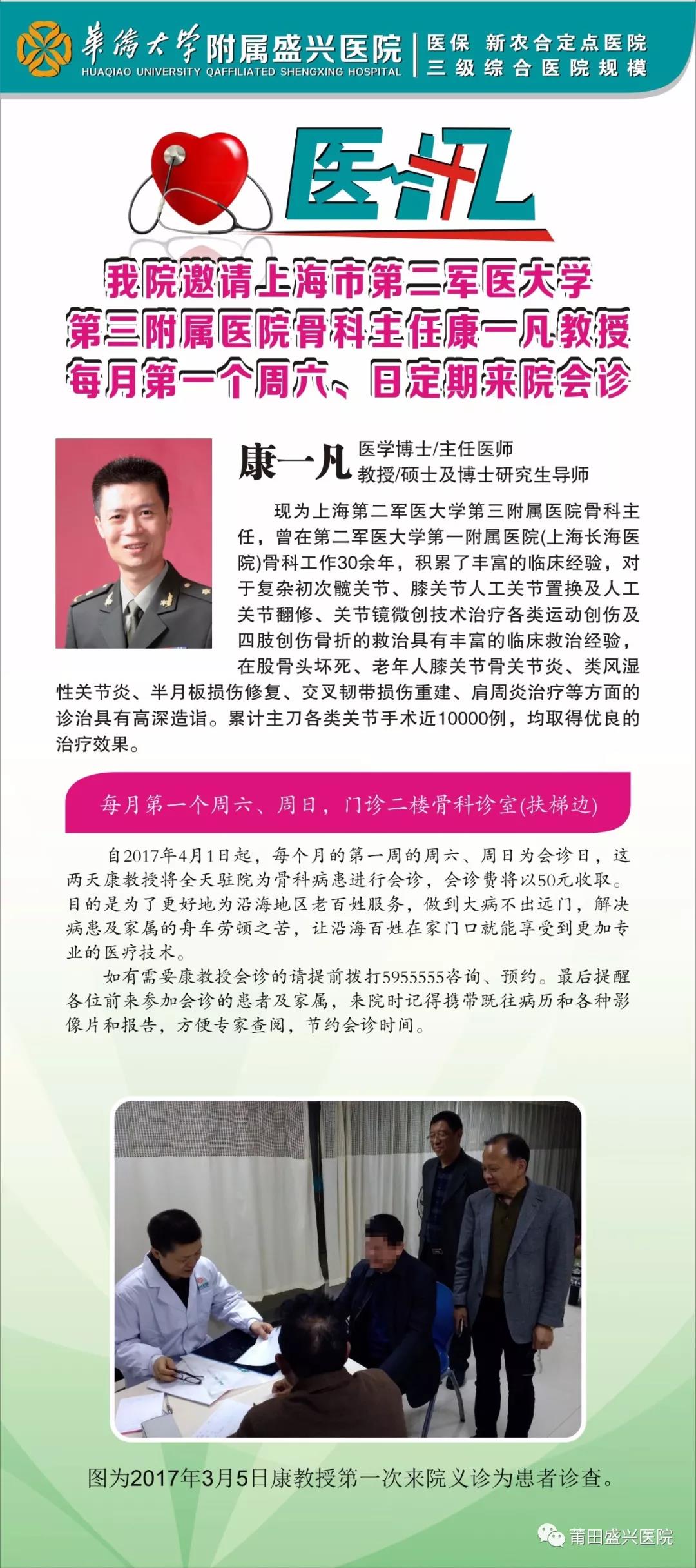 我院特邀上海市第二軍醫(yī)大學(xué)第三附屬醫(yī)院骨科主任康一凡教授定期來院為骨科病患會……
